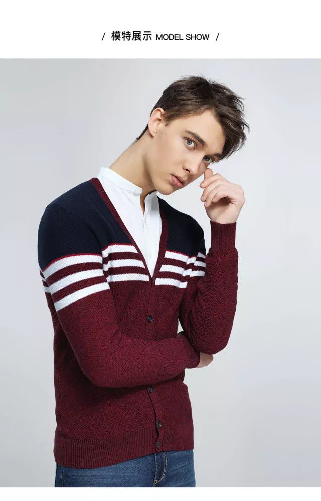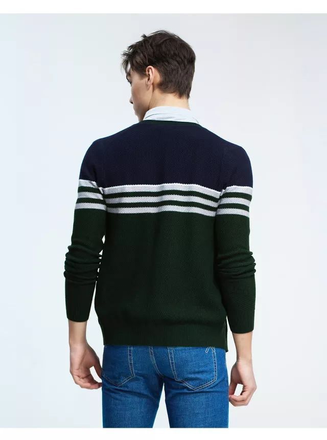 100%棉面料,富有手感,柔软细腻;12针针织数,厚度适中,穿着舒适;V领设计,修饰颈项,展示迷人魅力;罗纹袖口与下摆,持久耐穿;条纹织花,点缀衫身,丰富视觉,时尚感十足.