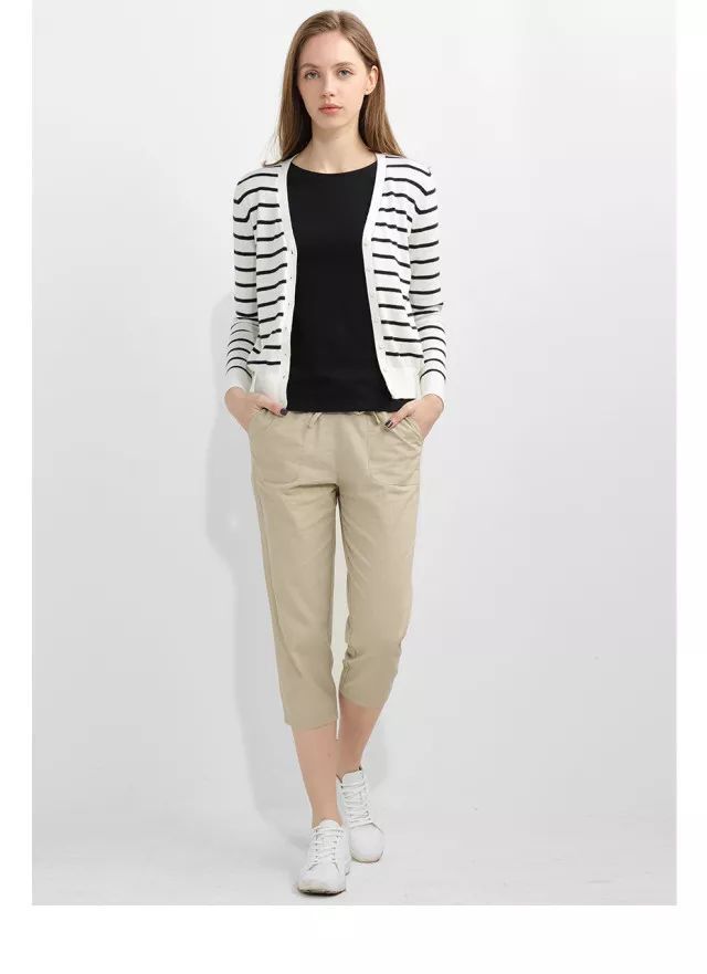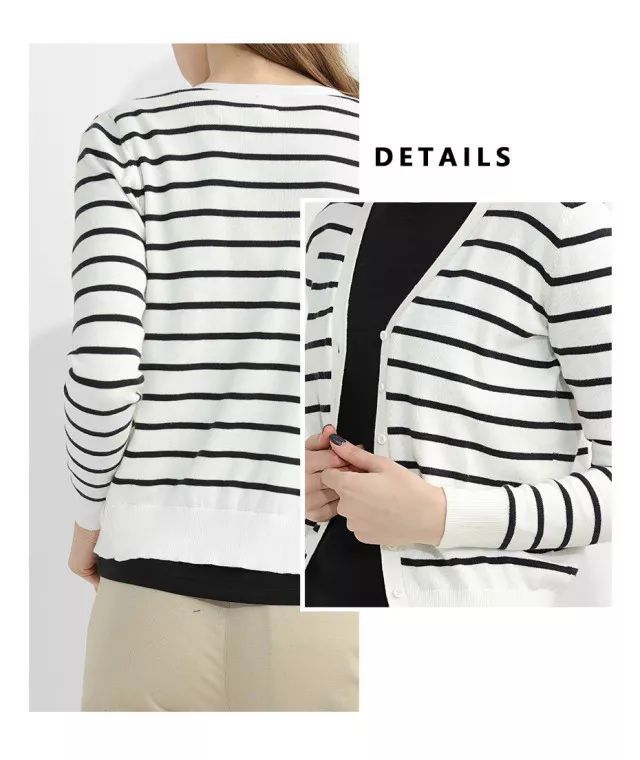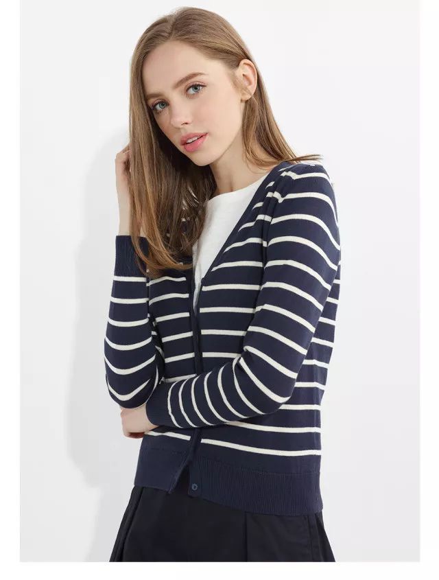 100%棉面料,质感细腻,柔软舒适;12针针织数,厚度适中;优质钮扣开襟,经久耐用,方便穿脱,可系扣如同V领,修饰颈项;款式分别有素色、拼色条纹可供您随心选择