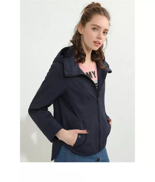 100%锦纶面料,耐磨耐穿,不易变形,色泽牢固;连帽版型,休闲风十足;下摆前短后长设计,穿着个性自在,增添款式设计感;前幅对开按扣插袋,休闲实用兼具装饰性.