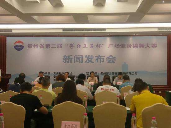 贵州省第二届“茅台王子杯”广场健身操舞大赛新闻发布会现场8月10日,贵州省第二届“茅台王子杯”广场健身操舞大赛新闻发布会在贵州饭店举行。发布会公布了贵州省第二届“茅台王子杯”广场健身操舞大赛公益活动将于2017年8月至11月举行。贵州省体育局副局长、贵州省体育总会常务副主席肖俊、贵州茅台酱香酒营销有限公司副总经理郑悄然等出席发布会。据了解,本次比赛参加运动员预计在3万人左右,参加队伍将来自各乡、镇...