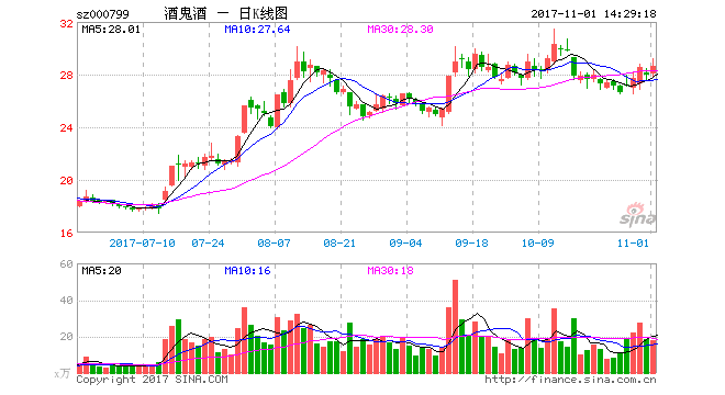 酒鬼酒(截止9月30日)股东人数为65129户 环比增加29.3%