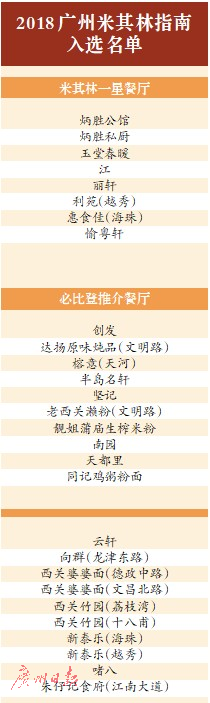 2018首版《广州米其林指南》发布 63家餐厅入选榜单