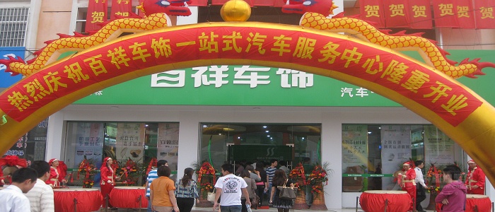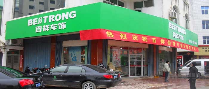 2009年12月,经销商陈素明与公司签订合作协议成立百祥枫亭专卖店。目前,该专卖店以气势磅礴的店铺门头、全新的陈列道具和特色的空间设计,在当地形成了一道亮丽的绿色风景线。虽然百祥枫亭专卖店经营至今只有短短4个月,但是凭着百祥特色的品牌优势和丰富的产品系列迅速打开市场,“尊贵、品味、奢华”的品牌形象更是赢得了广大车主们的青睐。