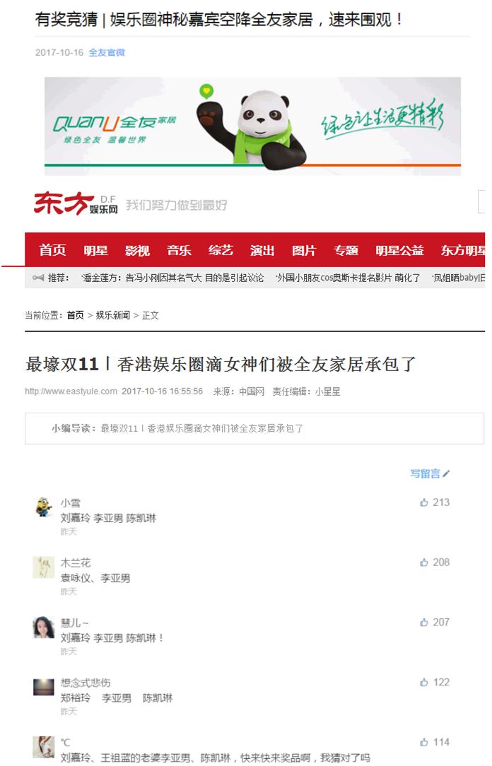 重磅:刘嘉玲、李亚男、陈凯琳将助阵全友家居双十一