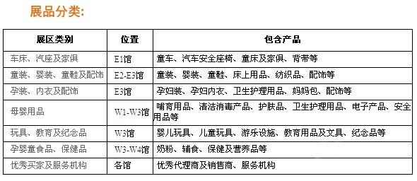 展品涵括儿童、婴儿、孕妇全系列产品,包括服装、用品、车床、家俱、玩具、教育、食品等等;