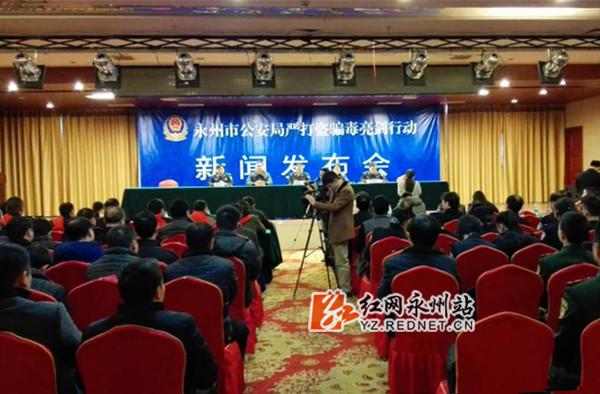 新闻发布会现场火线记功民警受表彰赃物展示红网永州站12月24日讯(分站记者甘红春)12月24日,永州市公安局在蓝山县召开严打盗骗毒亮剑行动新闻发布会,会上,蓝山县通报了全县公安机关开展严打盗骗毒亮剑行动以来第一阶段取得的成果。据发布会现场通报,在第―阶段短短的80余天里,蓝山县公安机关共破获盗窃、诈骗、金融、合同诈骗、毒品等五大类刑事案件261起,其中五类案件积案120起,五类案件现案141起,刑...