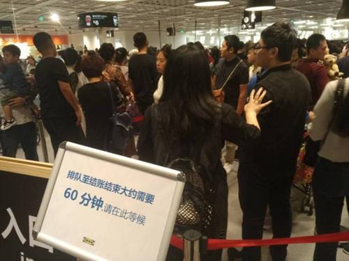 排队吃饭至少一个小时 想在宜家蹭睡不容易