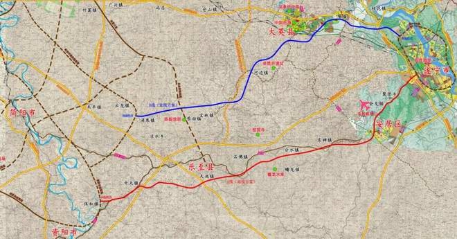 图中蓝线为遂宁至成都天府国际机场快速通道走向示意。(遂宁市交通运输局供图)四川在线消息(李琴芳记者袁敏)11月14日,记者从遂宁市交通运输局获悉,遂宁至成都天府国际机场快速通道线路走向已初步确定。快速通道起于遂宁市中环线新桥镇,经大英县、资阳市乐至县,止于成都天府国际机场,全长128.2公里,为双向6车道一级公路。抢抓成都“东进”机遇,遂宁至成都天府国际机场快速通道建设,已被列入成遂协同发展推进基...