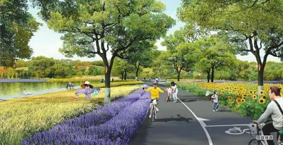 成都白鹭湾滨水绿道。(效果图)绿道从花田景观蜿蜒而过。(效果图)9月2日上午11点,锦城绿道首期工程在玉石湿地示范段宣布启动建设。总长近17000公里的天府绿道系统正式启动建设。在成都市建委公布的天府绿道总体规划中,天府绿道由三级慢行系统组成,“一轴两山三环七道”的区域级绿道1920公里、在城市各组团内部成网的城区级绿道5000公里以上、与城区级绿道相衔接,串连社区内幼儿园等设施的社区级绿道100...