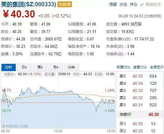 从2015年6月之前乐视网备受追捧,到2016年6月份以来美的集团市值连创新高,资本市场的价值取向悄然发生改变。为何一向贴着“传统制造”、“家电企业”标签的美的集团,突然成了资本市场追捧的热点?这一转折背后的深层逻辑究竟是什么?在上周的最后一个交易日(6月9日),美的集团(000333)股价以微涨0.12%报收于40.30元,总市值再次冲高至2605.67亿元。就在前一天的6月8日,美的集团股价大...