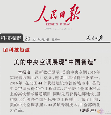 人民日报为“第一”发声 美的中央空调为何频受关注?