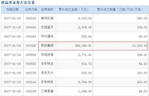美的现28.93亿天量大宗交易!卖方是同一营业部