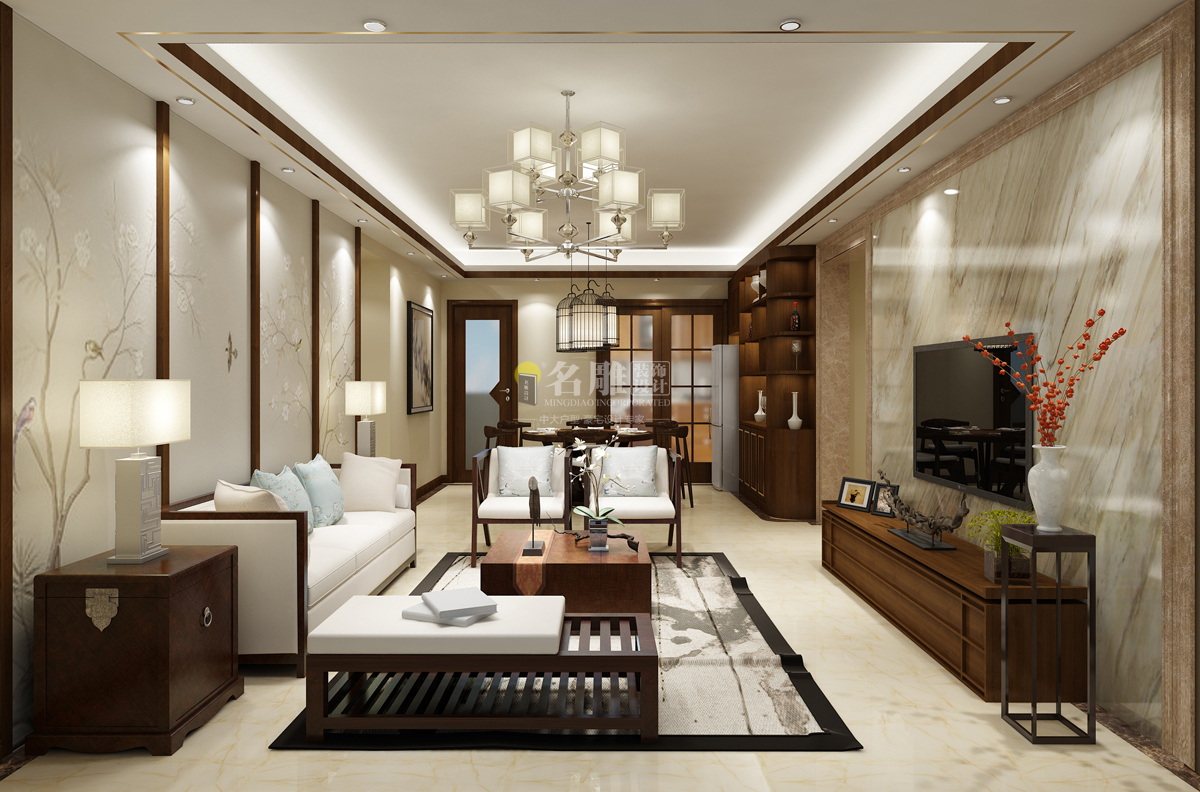 业主比较喜欢新中式的元素,然后我们经过多次的沟通,运用到一些大理石,木线条,不锈钢等等材质来搭配出一个全新质感,再搭配到木加皮的新元素家私,不像传统的实木家私那样古典,客厅的新中式吊灯和餐厅的鸟笼吊灯显得这个空间特别阔朗,这个样设计简而精美,混入了一些新元素,而又不显得太古典。本来餐厅的空间不是很大,所以选择客厅与餐厅的空间联系在一起,所以把天花做成一体,电视背景采用了米黄色大理石,搭配这种沉色的...