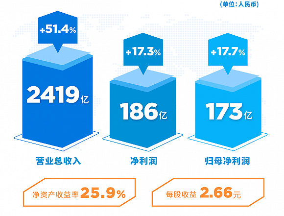 天下竟然有这样的事:2017年,中国两大著名家电集团——美的集团与海尔集团,营业收入不约而同定格在“2419亿元”这个奇妙的数字上。3月30日,美的集团(000333)如期发布2017年财报。报告显示,2017年美的集团实现营业总收入2419.19亿元,同比增长51.35%;实现净利润186.11亿元,同比增长17.33%;实现归母净利润172.84亿元,同比增长17.70%;每股收益2.66元。...