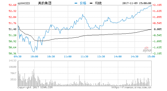 新浪财经证券>正文行情股吧新闻外汇快讯:美的集团受挫跌超3%成交量逐渐放大热点栏目资金流向千股千评个股诊断最新评级模拟交易客户端阿里员工炒港股年赚1000万?点这里,你也可以成为下一个TA!【详情】新浪财经讯11月8日消息,美的集团午后受挫持续走低,成交量逐渐放大,截止发稿,美的集团跌3.26%,报52.82元。@@title@@@@teacher_name@@:@@title@@进入【新浪财经股...