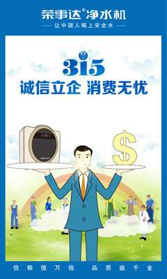 \u00A0\u00A0\u00A0\u00A0慧聪净水网一年一度的3?15消费者维权日如期而至,今年的主题提倡“消费无忧”,相比往年的“新消费我做主”、“携手共治畅享消费”等,消费者与产品依然是不变的核心,这要求各企业积极倡导以大众为主导的消费理念,实现“产品质量无忧”、“消费者选择无忧”,共同营造良好的消费环境。而作为十余年专注净水领域发展的荣事达水工业公司,亦坚持从我做起,用好产品与消费者对...