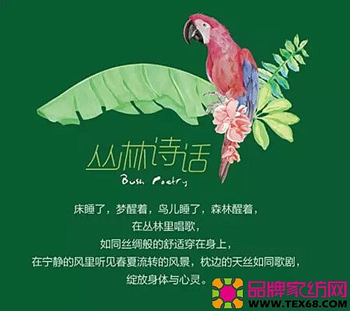 \u00A0\u00A0\u00A0床睡了,梦醒着,鸟儿睡了,森林醒着,在丛林里唱歌,如同丝绸般的舒适穿在身上,在宁静的风里听见春夏流转的风景,枕边的天丝如同歌剧,绽放身体与心灵。Artilivi(提籁雅)春夏新品主题“丛林诗话”\u00A0\u00A0\u00A0本季,Artilivi(提籁雅)春夏新品以“丛林诗话”为主题,大胆采用颇具热带风情的颜色与图案,打造了一幅生机盎然的热带雨林景象,向人...