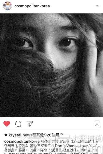 另外,郑秀晶和金俊元的歌曲《IDon`tWannaLoveYou》在14日向15日迈进的子夜(夜十二点)将会公开,“IDon’tWannaLoveYou”.激动的郑秀晶还在自己的ins上难得的打了一次广告,希望大家支持她的歌曲。今日消息,f(x)成员郑秀晶Krystal与GlenCheck成员金俊元将展开特别合作。此次由郑秀晶Krystal与金俊元展开合作的企划《IDon`tWannaLoveYo...