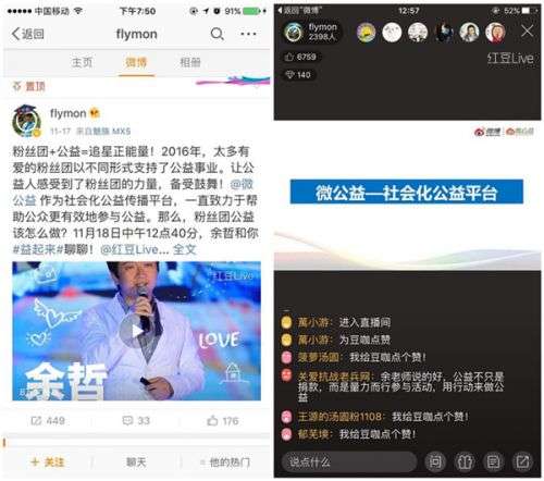 微公益余哲做客红豆Live 赞众多明星粉丝热心公益