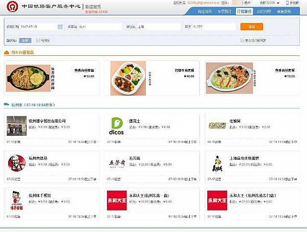 17日起,坐动车可网上订餐 可选肯德基等5商家22种套餐